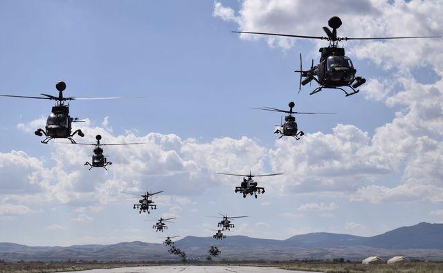 Η εντυπωσιακή απογείωση αναγνωριστικών Kiowa κι επιθετικών Apache σε άσκηση που τρόμαξε την Τουρκία.