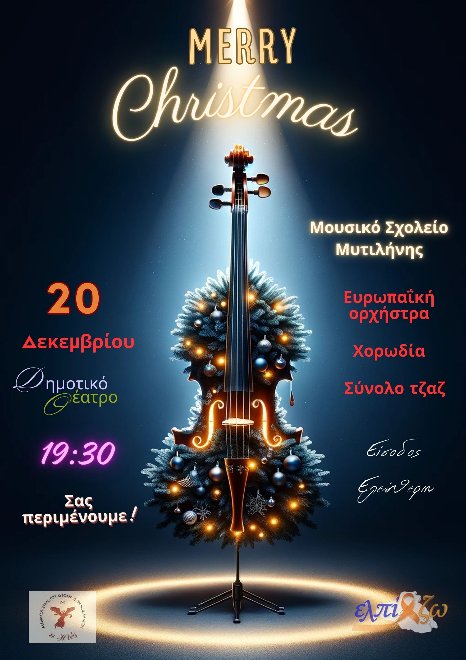 Το Μουσικό Σχολείο Μυτιλήνης με χαρά ανακοινώνει την διοργάνωση Χριστουγεννιάτικης συναυλίας , που θα πραγματοποιηθεί στις 20 Δεκεμβρίου 2023, στις 7:30 το απόγευμα, στο Δημοτικό Θέατρο της πόλης.