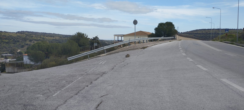 Τα αυτοκίνητα που στρίβουν μπροστά στο αδιέξοδο του χαλασμένου δρόμου