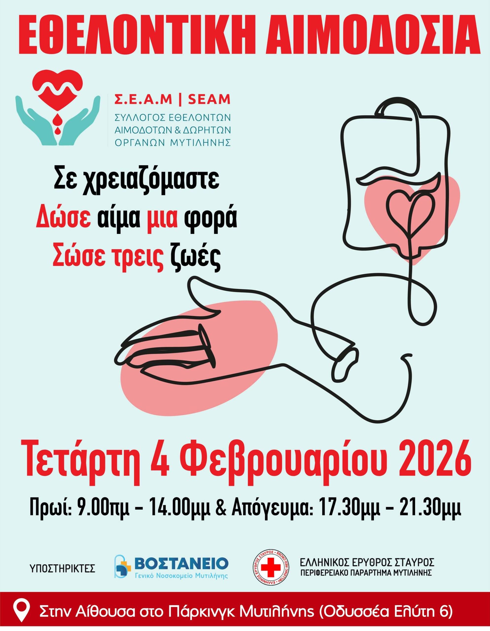 Εθελοντική Αιμοδοσία στη Μυτιλήνη την Τετάρτη 4/2/2026