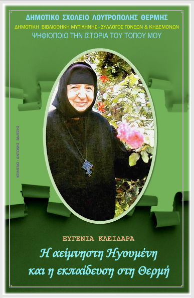 @ Ένα πολύ συγκινητικό και περιεκτικό αφιέρωμα στη μακαριστή Ηγουμένη Ευγενία Κλειδαρά έγινε σήμερα στο Δ.Σ. Λουτρόπολης Θερμής στα πλαίσια του εορτασμού της ημέρας των Τριών Ιεραρχών.