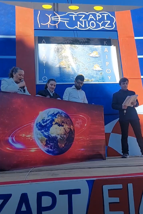Στη συνέχεια παρουσιάστηκε το μαθητικό καρναβαλικό σκετς «Πάμε για φραπέ;» με στίχους της πρωτοεμφανιζόμενης σατιρογράφου Σοφίας Ευστρ. Κουταλέλη, που εκφώνησαν οι Άννα Κουδουνέλη, Μπέτυ Χούλαρη, Σωκράτης Βασλάς, Σταυρούλα Μανώλη-Γεωργαντή. Οι νέοι σκυταλοδρόμοι της παράδοσης άφησαν πολύ καλές εντυπώσεις και ελπιδοφόρα μηνύματα για το μέλλον.