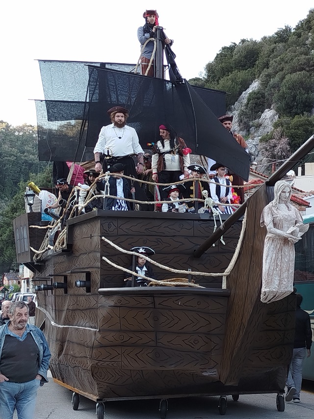 2. Οι πειρατές της Καραϊβικής. Σάτιρα Δημήτρη Τζανή, που εκφώνησαν οι Στρατής Β. Τοπαλής, Γιώργος Λεβέντης, Χρήστος Κουφέλος, Μυρσίνη Κουτσκουδή-Βουρλή και Κατερίνα Γούναρη. Συμμετείχαν τα παιδιά: Βασίλης Ευστρ. Τοπαλής, Κώστας Ευστρ. Τοπαλής, Ταξιάρχης Λεβέντης, Γρηγόρης Παν. Ψαρρός, Στρατής Παν. Ψαρρός, Θανάσης Καπάτος.