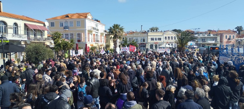 Εργαζόμενοι, νέοι και οικογένειες έχουν συγκεντρωθεί στο κέντρο της Μυτιλήνης, τιμώντας τη μνήμη των θυμάτων της τραγωδίας στα Τέμπη, τρία χρόνια μετά το δυστύχημα που συγκλόνισε ολόκληρη τη χώρα.