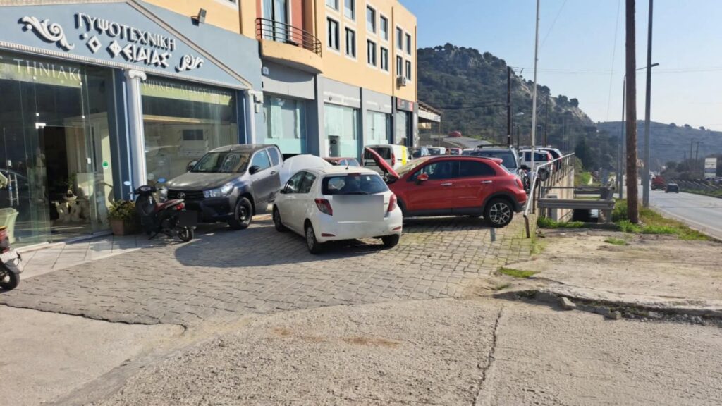 Το τροχαίο σημειώθηκε στο ύψος της επιχείρησης πώλησης αυτοκινήτων Τηνιακού, όταν κάτω από αδιευκρίνιστες μέχρι στιγμής συνθήκες ο οδηγός που κινούνταν με καθοδική πορεία έχασε τον έλεγχο του οχήματος. Το αυτοκίνητο βγήκε από τον δρόμο και εισήλθε στον χώρο της επιχείρησης.