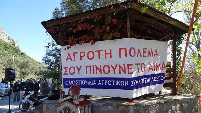 Στην κινητοποίηση έξω από το εκθεσιακό κέντρο που φιλοξένησε την agrotica βρέθηκε και χαιρέτισε αντιπροσωπεία της Ομοσπονδίας Αγροτικών Συλλόγων Λέσβου.